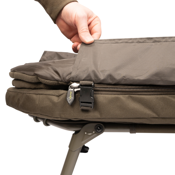 The Benchmark Leveltech range of complete sleep systems builds on Avid’s reputation for high quality comfortable bechairs and sleeping bags. Featuring their own patent pending LevelTech system that features a one touch leg mechanism for super simple setup and height adjustment. The two built in spirit levels make it easy getting a truly flat surface. That, coupled with the thick 50mm layer of memory foam, makes for a great night sleep. Coming with a 5 season double layer waterproof duvet, with zip baffles to keep out any drafts. The inner duvet is reversible with a soft fleece on one side and smooth peachskin on the reverse. There’s also plenty of room for your feet with a larger bottom end void that gives you some room to move.
