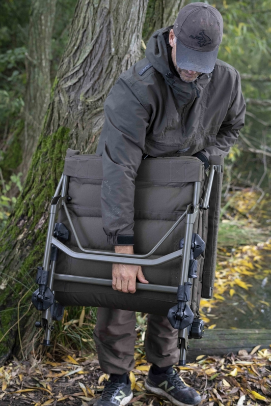 The ultimate in comfortable bankside seating has arrived! Fleece lined and with a fully padded seat, and even arm rests! Features the rock steady adjustable leg system to keep you level on uneven ground and oversized mudfeet to stop you sinking in. the back can also be altered to your liking with a clever multi lock mechanism, perfect for a bankside snooze.
