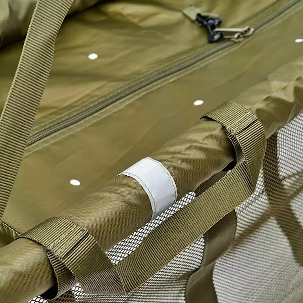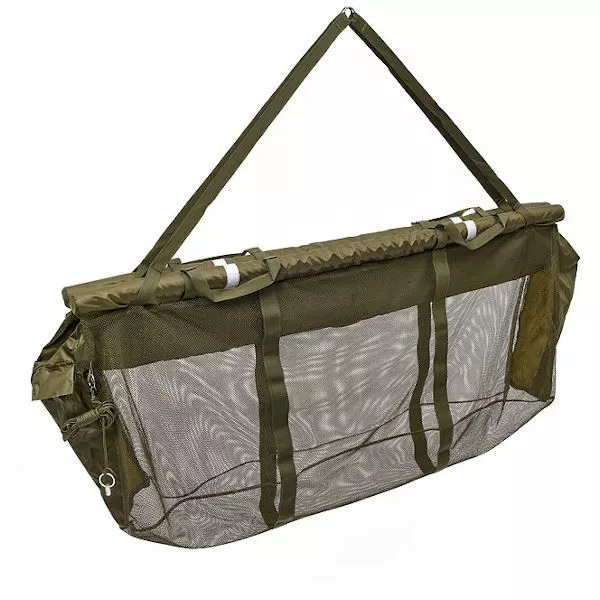Designed for looking after your catch safely and securely while you rest your fish. With an all mesh lower that zips up at both ends allowing water to circulate freely, and drain away quickly when its time to weigh your fish. Built with two spacer arms to make sure they keep their shape when occupied. There are four carry handles in addition to the large weighing strap, ideal if you need an extra pair of hands to lift the fish. Supplied with a strong nylon cord and brass bankstick thread, as well as a storage bag.