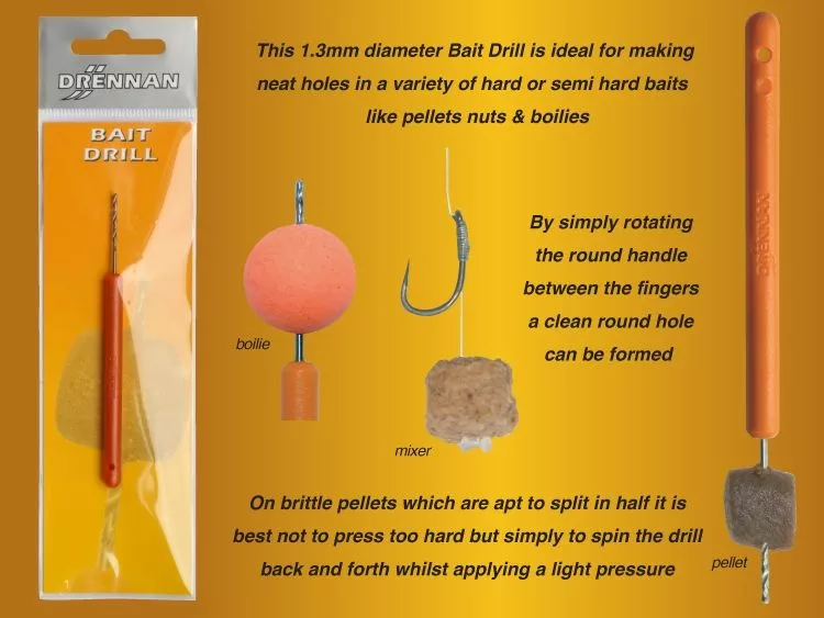 - This Drennan bait drill is ideal for drilling out all types of nuts and trout pellets.