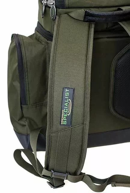 - Constructed from a tough and durable 600 denier fabric with a reinforced wipe clean, waterproof base. The bag has three external zipped pockets, along with a foil-lined top compartment which is ideal for storing and bait. The inside of the bag is lined and also has an internal clear zipped pocket on the bottom of the lid.