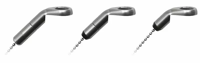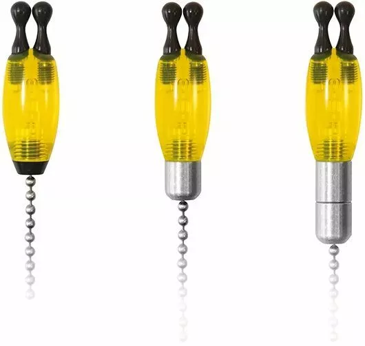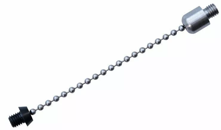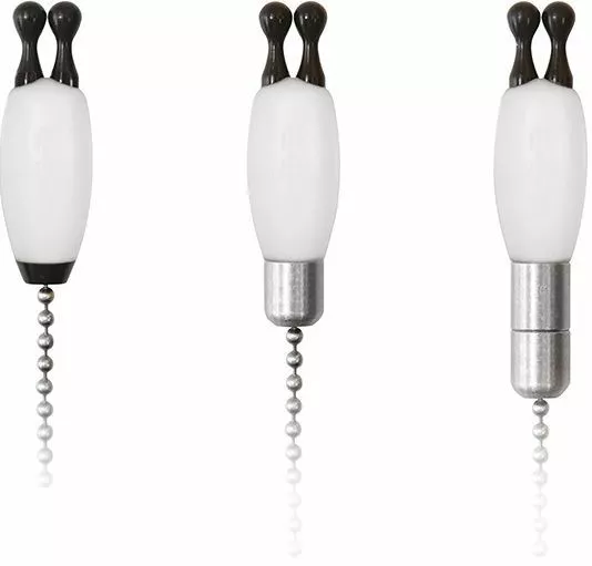 - The two stainless ball chains have a unique feature where we have used a plastic connector at one end and a 3g stainless connector at the other. This allows the chain to be simply reversed to add weight to the bobbin when required. Also adding the 3g stainless add-on weight integrated into the hockey stick increases the weight further and means that the PTFE head can be used at weights of 5g, 8g or 11g and the acrylic head at 3g, 6g or 9g. This makes for a highly versatile set up suitable for everything from slack line fishing where a light bobbin is used to tight line fishing at range with the weight of the bobbin increased to the maximum.