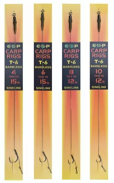 - These ESP carp rigs are put together using the Raptor T6 and the longer shank Raptor G4 carp hooks in conjunction with the ESP Sinklink hooklength material. These carp rigs are available in sizes 4 to 10 on a range of different hooklengths.
