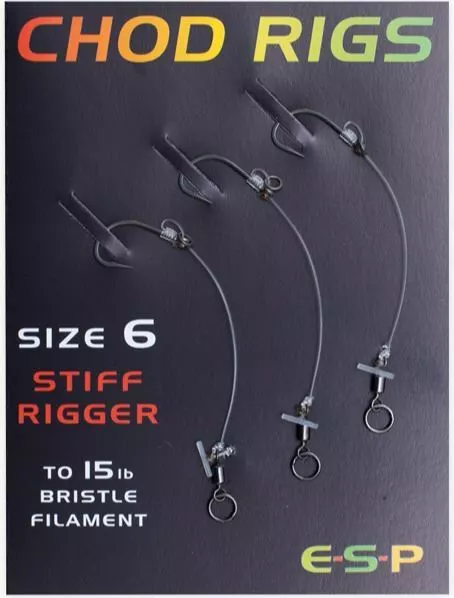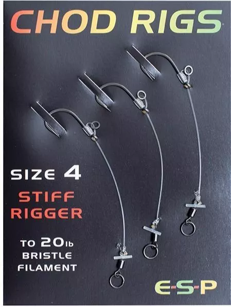 - The whipping knot on ESP Chod Rigs grips the hook very tightly ensuring the Bristle Filament comes off the hook dead in line with the shank.