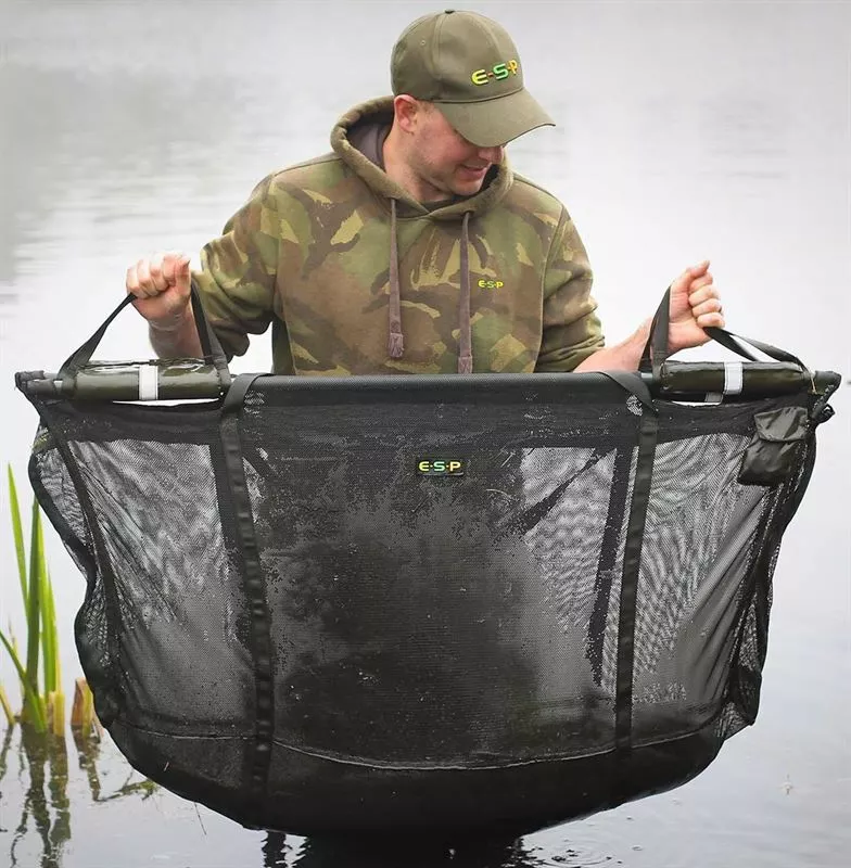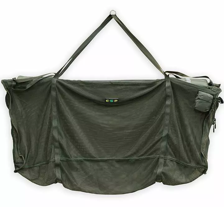 - Constructed from a super soft fish friendly material, this makes the whole weighing process really safe. Support is provided via reinforced straps which have looped fixed metal rings for attaching your scales.