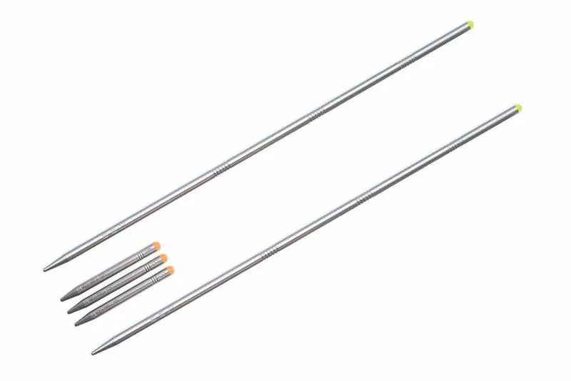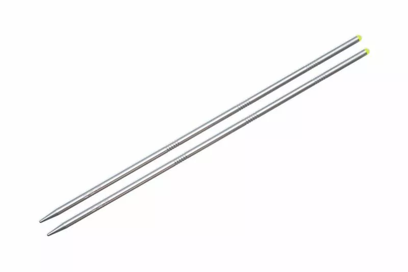 - This pair is made from stainless steel, and stored in a fabric sleeve. Also includes three critical distance spot markers.