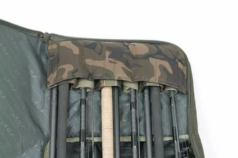 - Rod butt end slots into the padded hoods at each end whilst the tip end is secured in place by Velcro strap