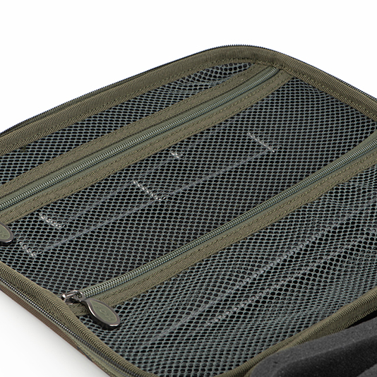 A dedicated protective stiff walled case designed to safely store your RX+ alarm heads. With space inside to house up to four individual head units, plus room for your receiver. There’s also two zipped compartments on the inside of the lid that will take a couple of compact buzzer bars and a pair of short banksticks.