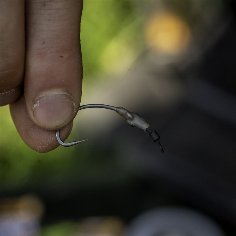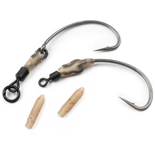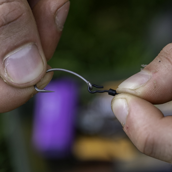 A way to secure your hook onto a quick change swivel without the need for shrink tube. Designed to thread over the point of the hook, up the shank and then slide neatly over the eye.