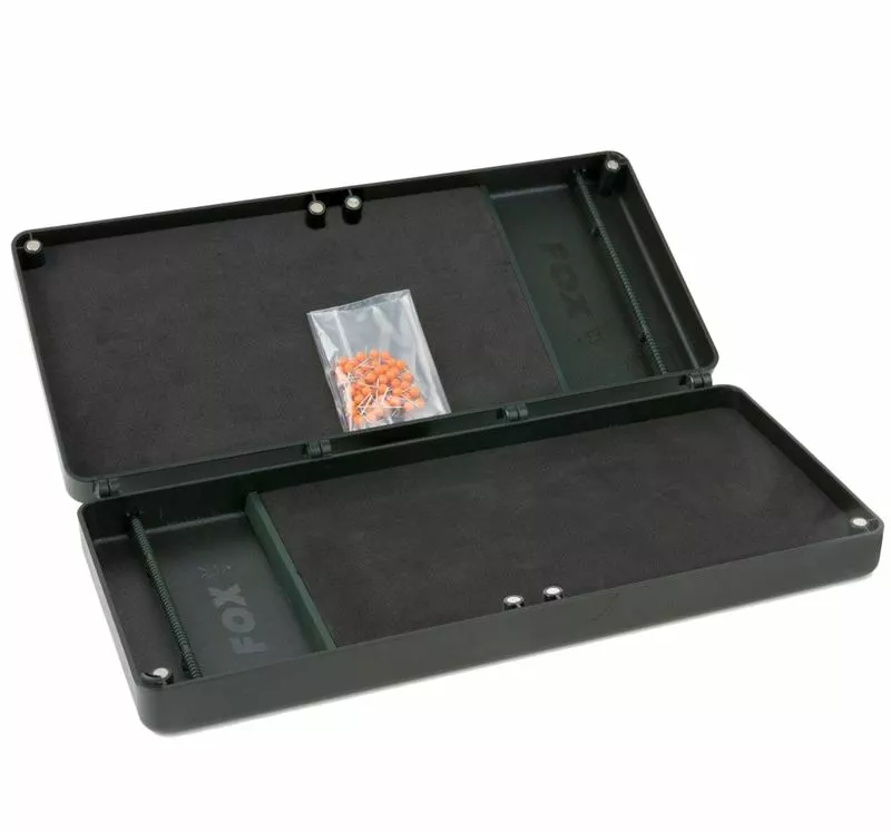 An innovative, interchangeable storage solution with a firm closure system, with each side containing high density foam to ensure the pins stay safely in place. The hook bars stop any sliding or bunching, and the ruler system on the outside allows you to accurately measure and tie up your rigs.