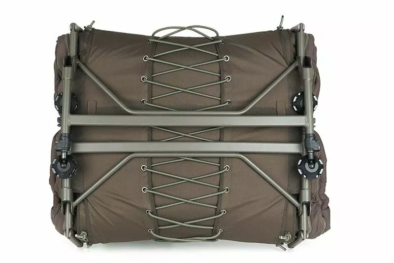 - Double hinges allow the bed to be packed away with the sleeping bag still attached