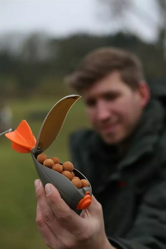 - These boast a number of unique features that sets it apart from any other bait delivery device currently on the market. Features such as a unique ‘scoop’ body shape, allow for rapid, single handed loading. This unique body and lid design not only enables you to fill the device very quickly, it also allows for highly efficient loading, resulting in a ‘one scoop’ operation that fills the entire inner compartment! This ‘complete fill’ enables you to put your bait out as quickly as possible, and additionally allows for an even weight distribution, which in turn makes it very stable in flight. Another benefit of the scoop design, in addition to the easy loading, is that it enables a tapered bait release should you wish to create a wider spread of free offerings, as opposed to tightly grouped patches, this is feature can be particularly handy when fishing a boilie-only approach or ‘big hit’ fishing with multiple rods on one large baited area.