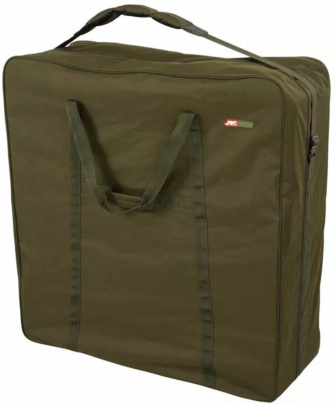 Constructed from hard wearing and water resistant 500D green polyester, this provides a waterproof carrier for standard and compact sized models of bed chairs. It features handy webbing grab handles to make loading into your car or barrow a little easier.