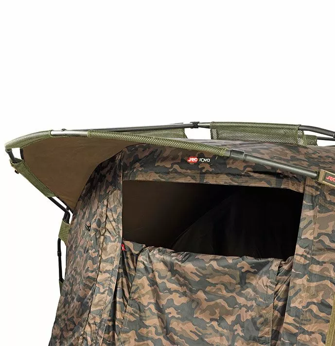 A stylish camo space-saving shelter that includes mozzy-mesh vents at the front and rear and allows great ventilation in the summer months!