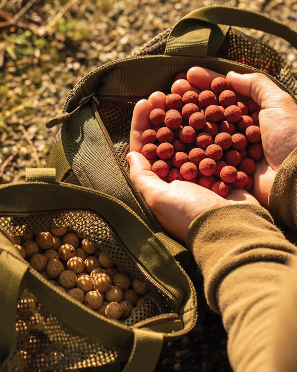 Soft mesh containers for keeping your boilies moisture free on longer sessions. Designed with 2 carrying handles that run underneath, providing extra support when full. As well as a re-enforced no snag zip, ensuring you can always access your bait easily.