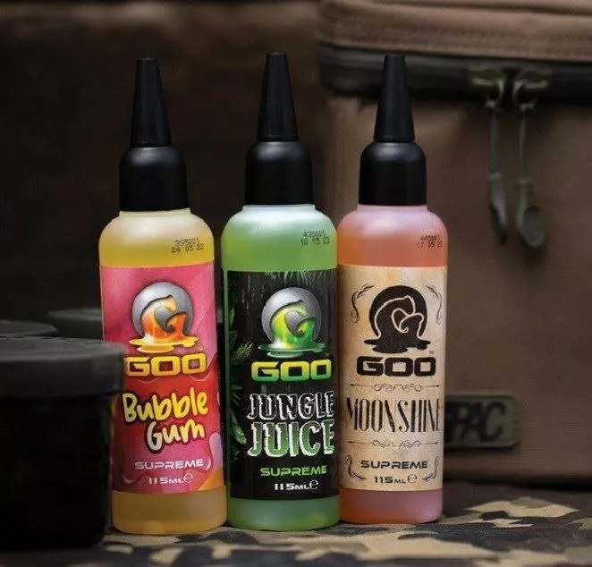 Kiana Carp Goo is a soak, a glug and a spod-mix additive, all rolled into one package. The cloud of attraction that comes off bait treated with Goo has to be seen to be believed, and this is one of the attributes that makes the Goo so revolutionary. The feeding triggers and flavour combinations housed in the mysterious liquid have been carefully tweaked to provoke a strong feeding response in carp, wherever they are in the water column. The Goo was developed by Loutjie Louwies in South Africa, where it has been used to great effect for many years, leading to the unlikely dominance of the South African national team in the FIPSed World Championships.