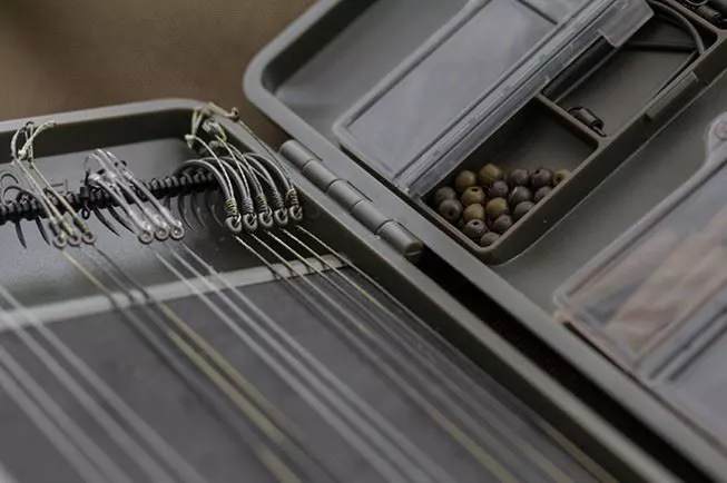 - A new take on the best selling original, this now also features compartments to keep all of your essentials such as swivels, tubing and boilie stops. These are kept in the 12 secure compartments that fill one side of the case, which snap shut to ensure there is no chance of them spilling out during transit.