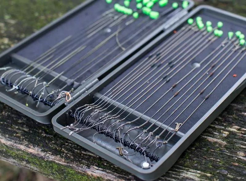 - Take a look at this new stunning rig box. It can store up to 60 pre-tied rigs in one box and has a lovely rubberrised feel to it. Also supplied are 15 double pins that allow rigs without loops or swivels to be stored, pinning the link material to the board. This allows the angler to adjust the length of their rig according to the situation, rather than fixing the length by tying a loop or swivel