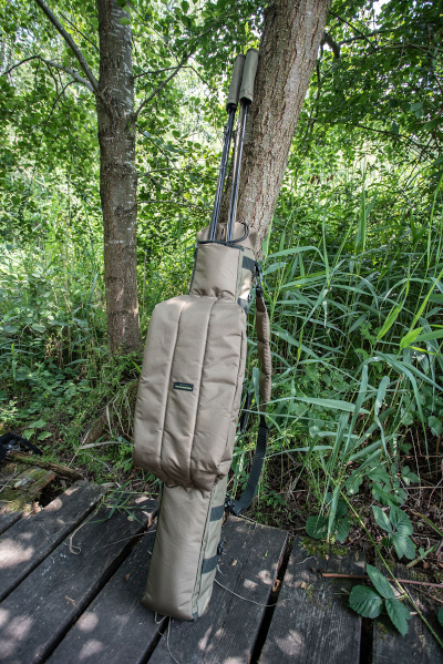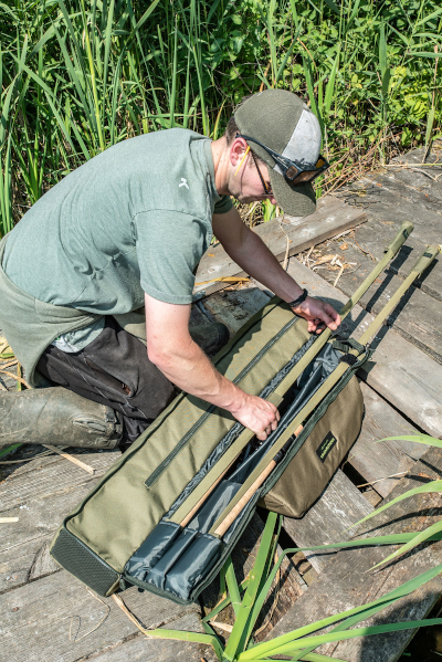 Take up to three made up outfits ready to go, along with all your bankwear and shelter along with you. Designed to take any shelter in the range, the large main compartment is separated from the others and closes with a drawstring top. The pouch for taking your outfits is padded and zipped but the tops remain out. There’s also a third outer side pocket for taking any landing net handles and bank sticks you might need.