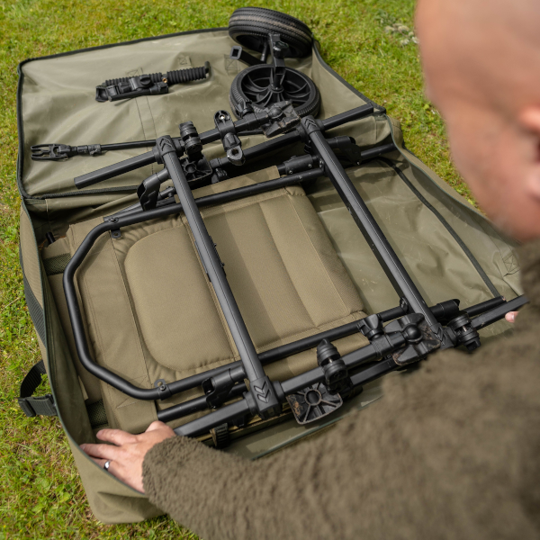 Dedicated storage for your Korum accessory chair with an additional storage for any extras you’ve added. Manufactured from a super tough waterproof ripstop material, they’re large enough to comfortably take the largest deluxe chair in the range. There’s also a separate large front pocket that will happily take a keepnet and landing net, or any accessories you’ll be using.