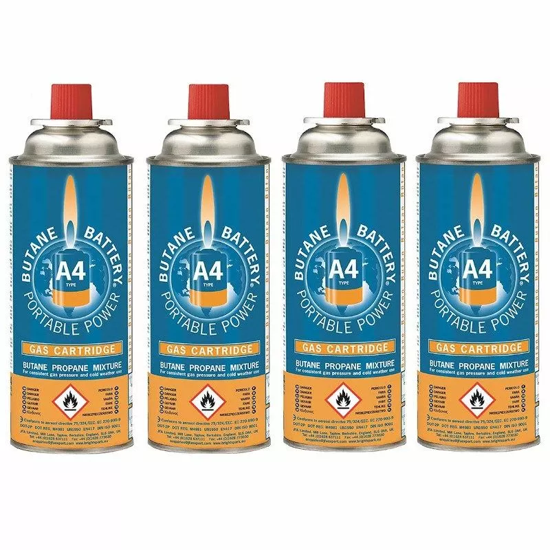 A pack of four replacement 220g BS100/BS102 portable stove cartridges. Ideal if you are going away for a few days, or just want to stock up on spares.