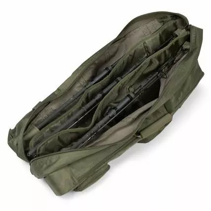 An ultra compact transport solution designed to fit three made up dwarf outfits, rigged up and ready to go! There’s also room for extras with additional zipped pockets. One longer one suitable for landing net handles and storm poles etc and another shorter one to take your bankware. There’s also a smaller zipped receiver or lead pocket.
