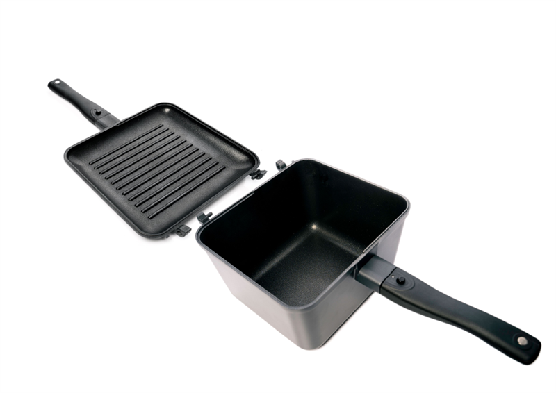 - Lightweight die-cast aluminium pans