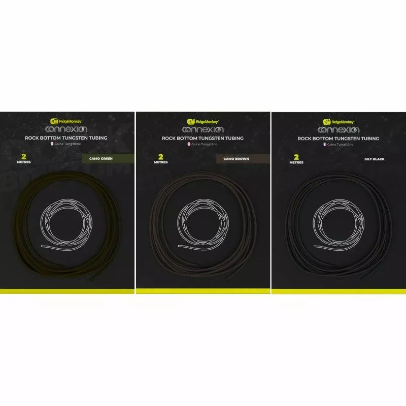 Ultra dense Rock Bottom tungsten tubing gives you a super supple way of anchoring your mainline to the swim bed. Designed to lay down and follow the bottom contours and a great option on waters where leadcore leaders are banned. Available in three different colour options to match the venue you’re fishing and ideal for use with the Ridge Monkey Uni-lead clips.