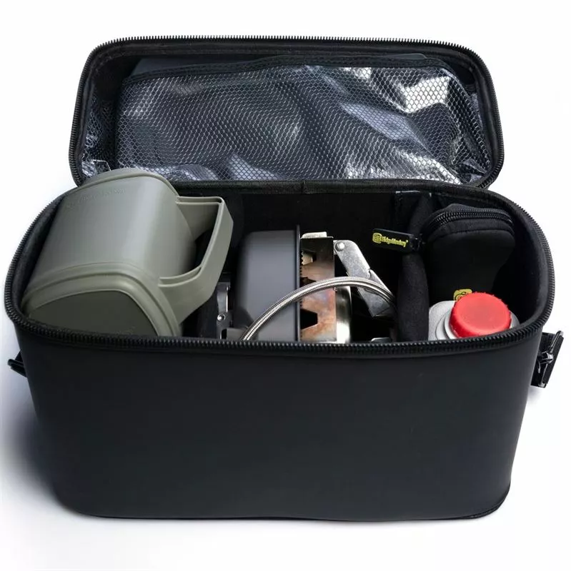 - Absolutely perfect for storing and protecting all your essential cookware! Features a custom divider and internal storage mesh pouch suited to plates or cutlery. There are extra-large zips and a removeable shoulder strap.