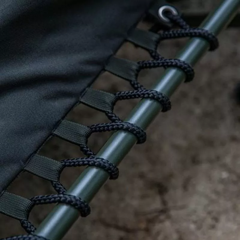 - Twin-pivot hinges to allow the bedchair to fold flat, even with a sleeping bag attached