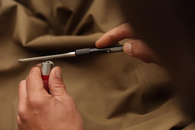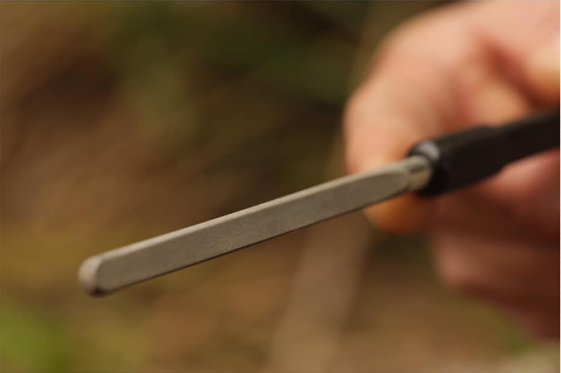 Great for reviving and adding life to used and dulled points and barbs. Featuring diamond grit encrusted flat and grooved faces for fine tuning and sharpening. The file itself locates inside the handle for protection when not in use.