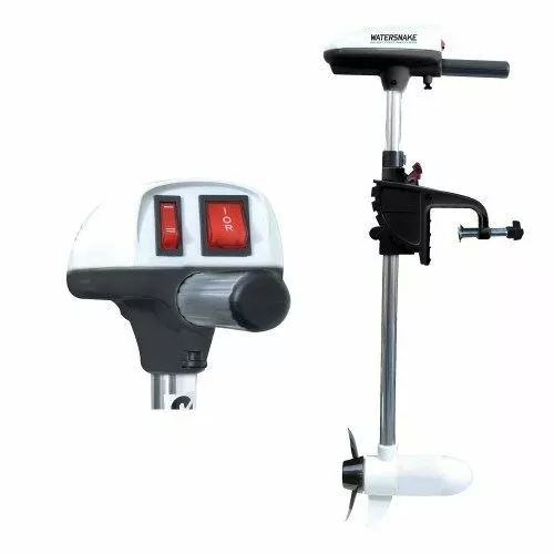 PERFECT FOR KAYAKS! Watersnake Asp Motors are the smallest of all Watersnake motors. They’re designed especially for kayaks and small canoes and have an adjustable transom-mount fitting for easy attachment. There is high and low-speed control, a forward and reverse switch, and it features an anti-impact clip system in the mount. The two-blade propeller is a weedless design. It’s a lightweight motor offering the ultimate in portability and can be used in both saltwater and freshwater.